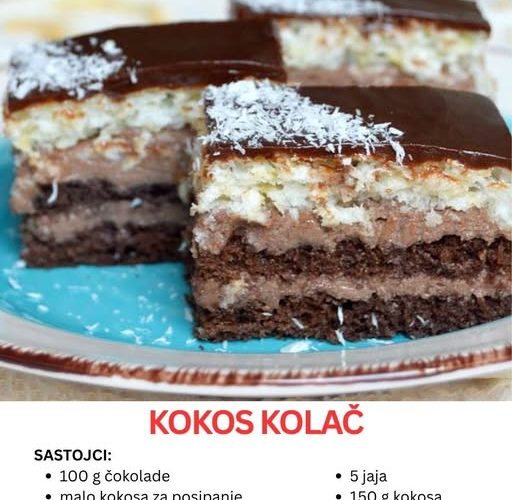Postoje kolači koji su jednostavni, skromni i gotovo neprimetni na stolu, ali kada ih probate – osvoje vas zauvek. Upravo takav je i ovaj kokos kolač sa čokoladom, desert koji spaja dve potpuno različite, ali savršeno usklađene teksture i ukuse: bogatu čokoladnu osnovu i nježnu kokos koru.
