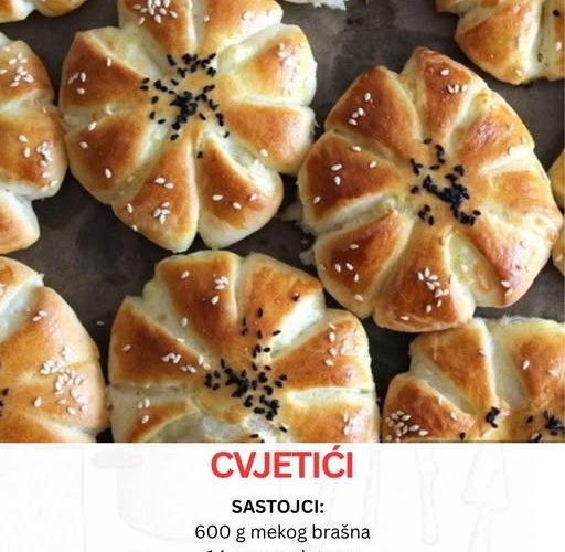 Postoje mirisi i ukusi koji nas momentom vrate u detinjstvo — oni trenuci kada se kućom širio miris sveže pečenog testa, a na stolu su nas čekali mekani, topli zalogaji koji su izgledali kao male cvetne čarolije. Upravo takvi su ovi Cvjetići – jednostavno, ali neodoljivo pecivo koje može ulepšati svaki doručak, užinu ili porodično okupljanje.