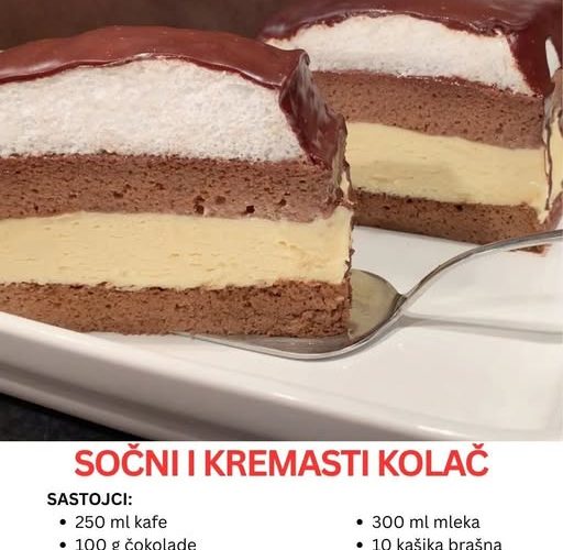 U svetu poslastica, retko koji kolač uspe da spoji sočnost, bogat kremasti fil i laganu, vazdušastu teksturu u jednom zalogaju. Upravo takva je ova receptura za kolač koji podseća na poslastice iz najboljih slastičarnica – domaći, ali sa sofisticiranim ukusom. Ono što ga čini posebnim jeste slojevitost i kombinacija različitih tekstura: mekana i sočna kora, bogat žuti krem i nežan beli krem, a sve to završeno sjajnom čokoladnom glazurom.