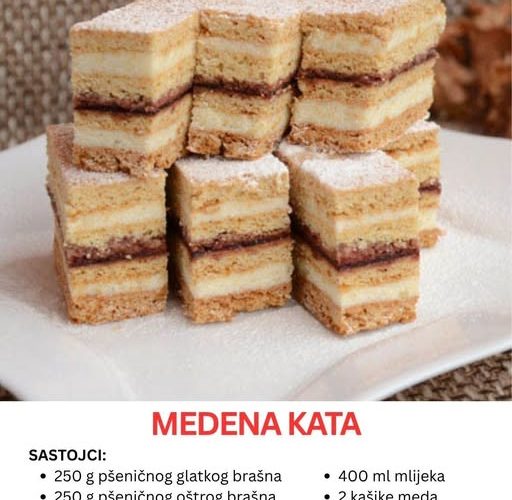 Postoje kolači koji nisu samo poslastica – oni su priča o tradiciji, o domovima punim mirisa meda i toplih uspomena. Jedan od takvih dragulja domaće kuhinje je Medena Kata, nežan, slojevit kolač koji spaja slatkoću meda, bogatstvo domaće kreme i voćnu svježinu pekmeza od šljiva.