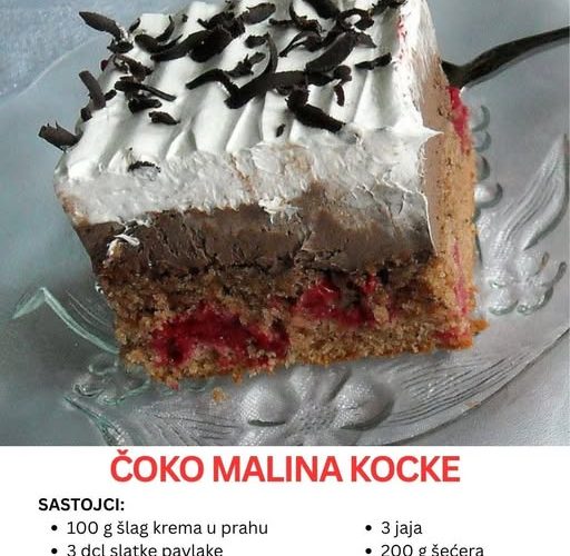 Čoko malina kocke su više od običnog kolača – one su savršena kombinacija sočne voćne note malina, bogatog čokoladnog fila i laganog šlag sloja. Svaki zalogaj donosi eksploziju ukusa i tekstura, što ih čini idealnim izborom za: svečane prilike, popodnevni čaj ili kafu, druženja sa porodicom i prijateljima