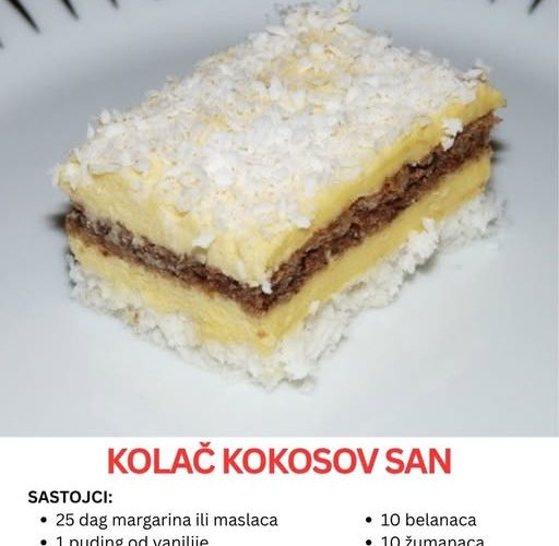 Postoje kolači koji nas svojim ukusom i izgledom osvoje već pri prvom zalogaju, a „Kokosov San“ je upravo jedan od njih. To nije samo još jedan desert s kokosom i čokoladom – to je poslastica koja spaja dva savršena sveta: mekoću kokosa i raskošnu punoću čokolade. Ovaj kolač podseća na popularne ledene kocke, ali ima svoj jedinstveni šarm i aromu koja ga čini posebnim.