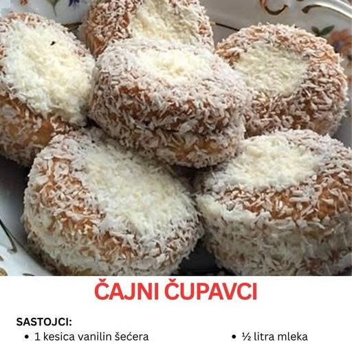 Ono što ove male, mekane zalogaje čini posebnim jeste njihova kombinacija lagane, kremaste kreme od gustina i hrskavih čajnih kolutića uvaljanih u kokosovo brašno, koje im daje prepoznatljivu teksturu i izgled. Upravo zbog te jednostavnosti i raskoši u isto vreme, čajni čupavci su postali klasik koji se lako uklapa i u svakodnevne, i u svečane trenutke.