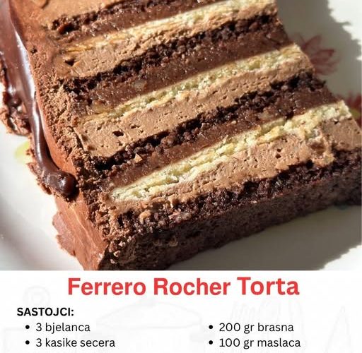 Postoji nešto čarobno u ukusu Ferrero Rocher praline — ta savršena kombinacija hrskavog lešnika, kremastog punjenja i bogate čokolade teško koga ostavlja ravnodušnim. Upravo ta magična ravnoteža između glatkog i hrskavog, između laganog i intenzivnog, poslužila je kao inspiracija za ovu Ferrero Rocher tortu — raskošan desert koji spaja dve vrste kora i dva sloja neodoljivih krema.