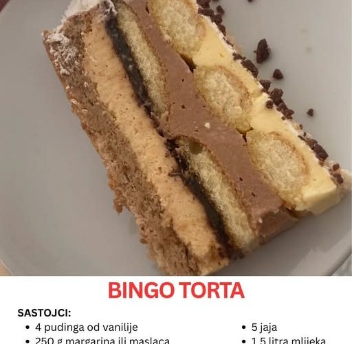 Postoji nešto posebno u domaćim tortama koje spajaju mekane kore, kremaste slojeve i bogat okus oraha i čokolade. Jedna od takvih je i čuvena Bingo torta, desert koji je u kratkom roku osvojio srca svih koji su je probali. Ova torta nije samo slastica — ona je prava simfonija okusa, gdje se svaka komponenta savršeno nadopunjuje, stvarajući savršenu ravnotežu između slatkoće, mekoće i svježine.