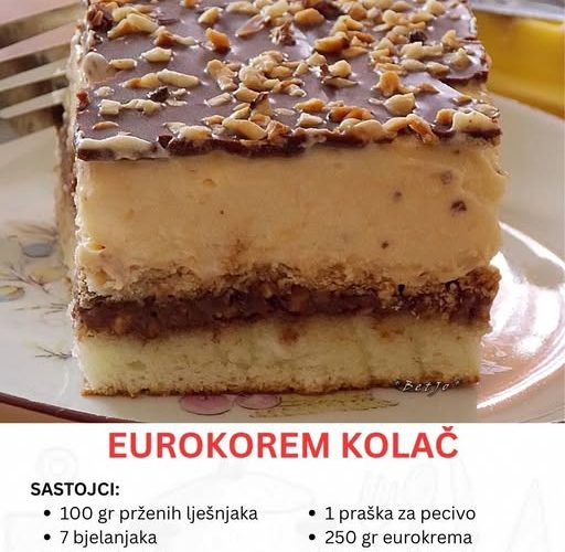 Postoji nešto posebno u mirisu toplih lješnjaka i čokolade koji se šire kućom dok se peče kolač. Ta aroma budi uspomene, podseća na detinjstvo i trenutke kada je dom ispunjen smehom, a na stolu čeka nešto slatko i domaće. Upravo takav doživljaj donosi Eurokrem kolač — desert koji spaja bogatstvo ukusa i jednostavnost pripreme u savršenu harmoniju.