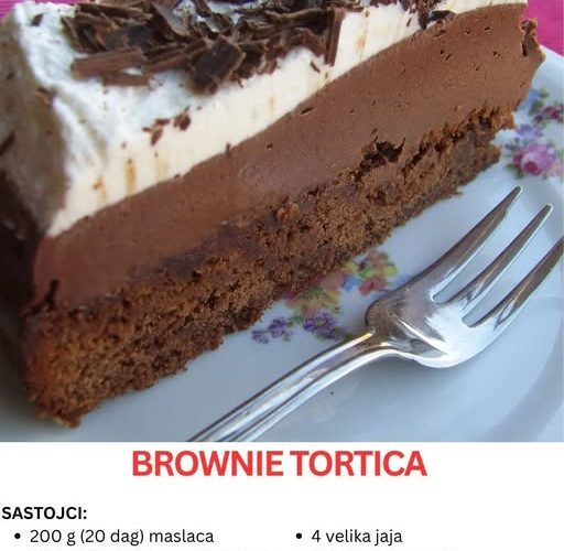 Ako tražite desert koji je istovremeno bogat, mekan, intenzivno čokoladan i jednostavan za pripremu, Brownie tortica je prava opcija. Ova tortica spaja sočan biskvit s bogatom čokoladnom kremom, a završni dodir šlaga ili čokolade za kuhanje čini je pravim užitkom za ljubitelje slatkog. Svaka porcija pruža eksploziju okusa, a priprema, iako deluje raskošno, iznenađujuće je jednostavna i pristupačna čak i za početnike u kuhinji.