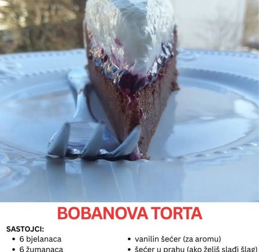Postoje deserti koji nas razvesele, ali postoje i oni koji nas potpuno osvojе već pri prvom zalogaju. Među njima se posebno izdvaja Bobanova torta, desert nevjerovatne jednostavnosti, a opet raskošnog ukusa. Ova torta spaja niz omiljenih sastojaka: pjenastu čokoladnu koru, osvježavajući pekmez od šumskog voća, te bogat i mekan šlag koji zaokružuje cijelu priču.