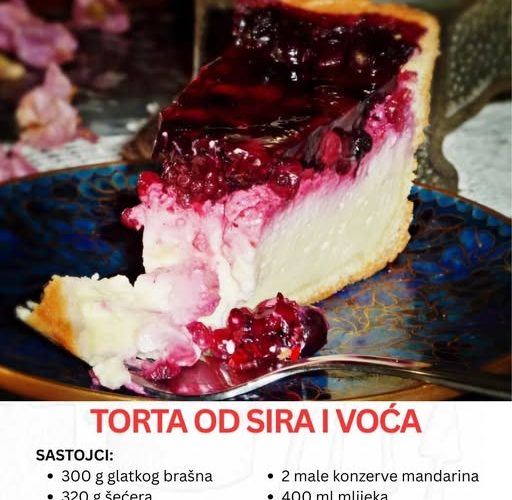 Torta od sira i voća je klasik koji sjedinjuje hrskavu podlogu od prhkog tijesta, baršunastu kremu od sira i osvježavajući voćni sloj. Ovaj desert je odličan izbor kada želite poslužiti nešto elegantno, a opet domaće — idealan za druženja, proslave ili kao fini završetak posebnog obroka.