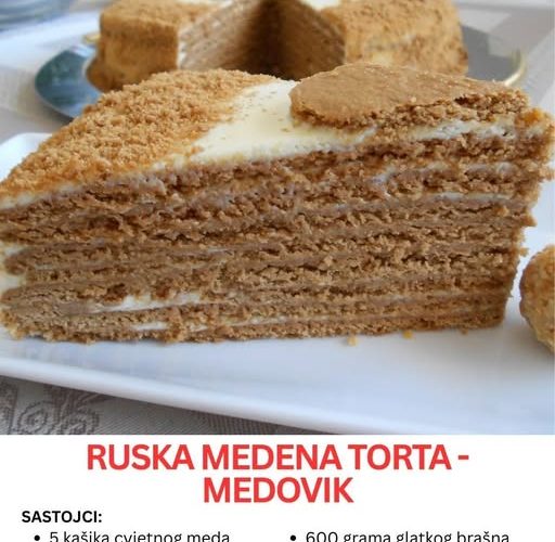 Među brojnim poslasticama koje su prešle granice svojih zemalja porijekla i osvojile kuhinje širom svijeta, posebno mjesto zauzima ruska medena torta – Medovik. Ova torta nije samo još jedan desert, već prava gastronomska priča satkana od mirisa meda, mekanih kora, svilenkastog fila i strpljenja koje se ulaže u njenu izradu.