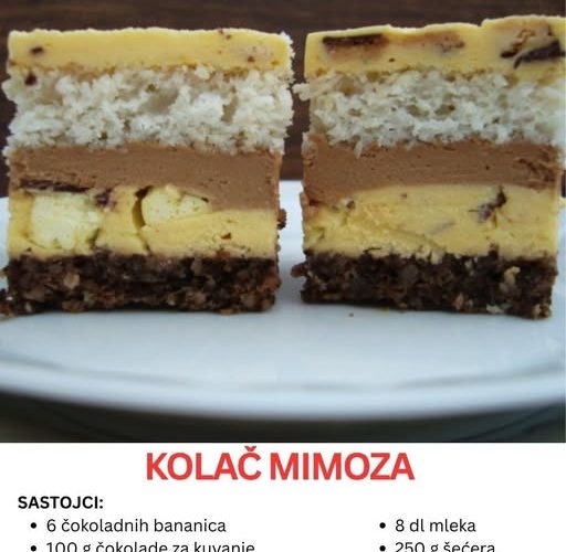 Ovaj desert ne samo da mami svojim izgledom, već pruža i pravi festival aroma: kokos, orah, čokolada i bananice u savršenom spoju čine da svaka kockica bude malo remek-delo domaće poslastičarske umetnosti. Ako volite kolače koji ne zahtevaju previše komplikacija, ali daju rezultat vredan svake pažnje, Mimoza kolač je upravo ono što će vas oduševiti.