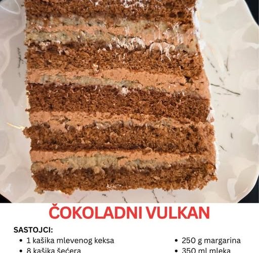 Postoje kolači koji nas vrate u detinjstvo, oni koji probude sećanja na nedeljna popodneva u porodičnoj kuhinji, na miris toplog mleka i otopljene čokolade koji se širi iz rerne. A postoje i oni kolači koji, čim ih probate, jednostavno osvojе srce i nepca svakog sladokusca. Jedan od takvih deserata je upravo Čokoladni vulkan – raskošan, bogat, pun ukusa i teksture, kolač koji svojom sočnošću i aromom ne ostavlja ravnodušnim ni najzahtevnije ljubitelje čokolade.