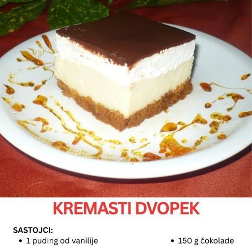 Ovaj kolač nije samo obična poslastica; on je nostalgija u modernom ruhu, miris koji podsjeća na nedjeljna popodneva i tople kuhinje naših baka. Jednostavan, pristupačan i neodoljiv, “kremasti dvopek” idealan je izbor kada želite desert koji će oduševiti i izgledom i okusom, a ne zahtijeva sate rada ni posebne kulinarske vještine.