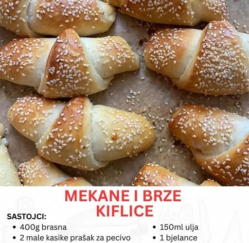 Ove fine brze kiflice posebno su pogodne za one dane kada nemamo vremena za dugo dizanje tijesta, a opet želimo nešto ukusno, svježe i domaće.