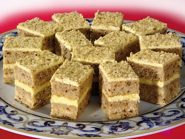 Pečeno tijesto prema želji prerezati i napuniti kremom, odozgo također premazati kremom i ukrasiti mljevenim orasima.