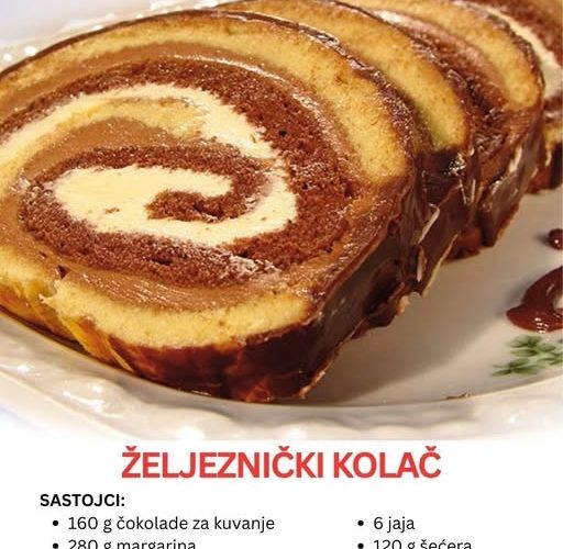 Postoje kolači koji ne osvajaju samo ukusom, već i izgledom – oni koji na prvi pogled izazivaju divljenje, a na prvi zalogaj oduševljenje. Jedan od takvih klasika domaće poslastičarske tradicije je „Željeznički kolač“, poznat po svojoj dekorativnoj spirali i božanstveno laganoj kremi. Iako njegovo ime možda asocira na nešto grubo i snažno, ovaj kolač je sušta suprotnost – on je mekan, kremast i nežan, s finim balansiranjem ukusa kakaa, čokolade i blage arome ruma.