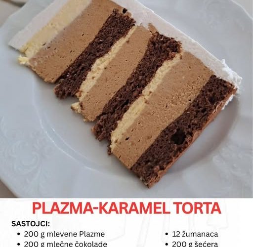 Postoje deserti koji osvajaju na prvi zalogaj, oni koje ne možete zaboraviti čak i nakon što prođe mnogo vremena. Jedan od takvih je Plazma-karamel torta – raskošna, kremasta i savršeno balansirana poslastica u kojoj se spajaju karamel, čokolada i poznati ukus Plazma keksa. Ovaj recept spada u one koje domaćice rado čuvaju u svojim sveskama, jer je dovoljno poseban za svečanosti, a opet dovoljno „topao“ i poznat da budi uspomene na detinjstvo.