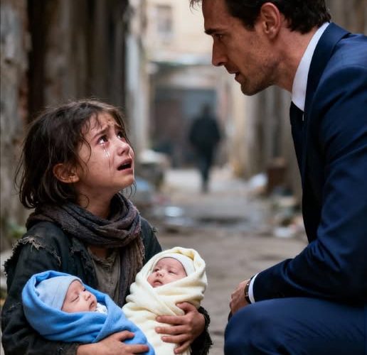 Stajala je ispred staklenog izloga luksuznog kafića, držeći u naručju dvije bebe koje su se tresle. Njene ruke su bridjele od napora, ali nije ih spuštala. Jedna beba je imala usijano čelo, druga je tiho cvilila, bez snage da zaplače. Daniela nije tražila sitniš. Nije ispružila ruku. Samo je stajala, kao da pokušava skupiti hrabrost za nešto što joj je bilo strano — molbu.