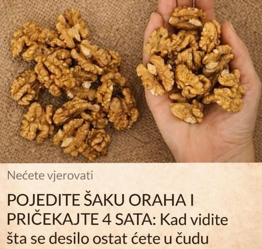 Kada razmišljamo o najjednostavnijim, a najmoćnijim stvarima koje možemo učiniti za svoje zdravlje, često zaboravimo na ono što nam je doslovno nadohvat ruke. Među brojnim namirnicama koje se često nalaze na našim stolovima, orasi se rijetko izdvajaju kao čudo prirode. Međutim, sve više studija i ličnih iskustava ukazuju na nevjerovatnu moć koju šaka oraha ima na organizam — i to u samo nekoliko sati nakon konzumacije.