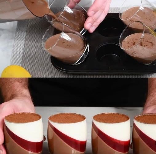- Dobijenu čokoladnu smesu sipati u čaše ili kalupe i ostaviti u frižideru da se stegne najmanje 2 sata.