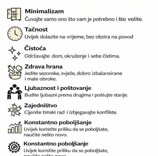 Ako primijenite makar nekoliko principa, poput minimalizma, tačnosti ili zdravije ishrane, možete osjetiti značajnu promjenu u produktivnosti, miru i kvaliteti života.