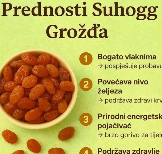 Zato sljedeći put kada poželite grickalicu – posegnite za šakom suhog grožđa i uživajte u spoju zdravlja i prirodne slatkoće.