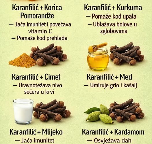 - Karanfilić + Mlijeko — Jača imunitet i poboljšava san