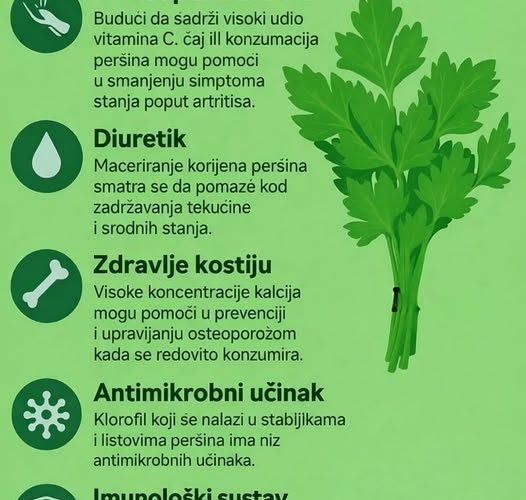 Peršin kao lijek je jedan od boljih prirodnih lijekova koji pruža bogatstvo vitamina i minerala. Peršin je bogat vitaminima A, E i C. Ovi vitamini doprinose očuvanju vida, čine kosu ljepšom, poboljšavaju pamćenje te jačaju imunitet.