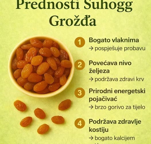 Zato sljedeći put kada poželite grickalicu – posegnite za šakom suhog grožđa i uživajte u spoju zdravlja i prirodne slatkoće.