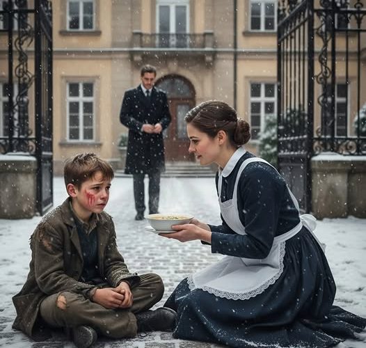 Claire je tiho otvorila bočna vrata i povela dječaka u kuhinju – jedino mjesto u ogromnoj vili koje je zaista imalo dušu. Mirisi svježeg kruha i tople čorbe ispunjavali su prostor.