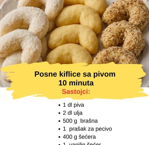 Ove kiflice su posne – ne sadrže jaja, mlijeko ili maslac, pa su pogodne za vrijeme posta ili za vegane.