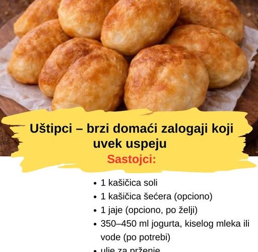 Uštipci su jedan od onih recepata koji se prave „na brzinu“, a miris i ukus podsećaju na detinjstvo, vikende i bakinu kuhinju. Spolja su zlatni i blago hrskavi, a iznutra mekani i vazdušasti – savršeni uz jogurt, sir, ajvar ili kao slatka varijanta sa šećerom u prahu i džemom. Najbolje od svega je što se prave od osnovnih sastojaka i ne traže mnogo vremena, pa su idealni kada želite brzo, domaće i zasitno.