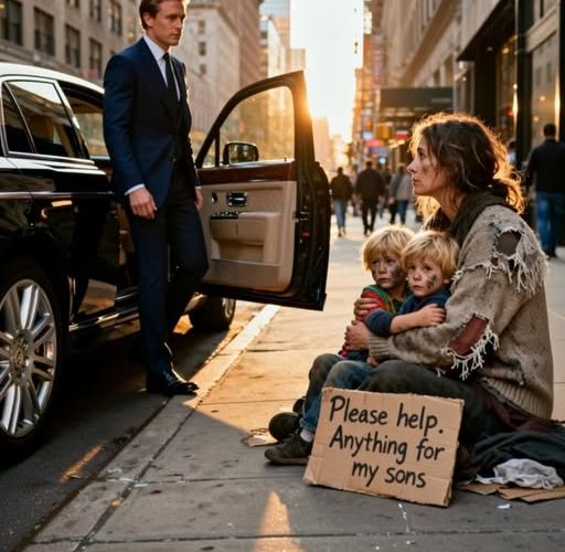Ipak, sudbina je imala drugačije planove. Dok je koračao prema svom poslovnom tornju na Madison Avenue, nešto mu je privuklo pažnju. Na uglu ulice sedela je žena, sklupčana na hladnom trotoaru. U rukama je držala kartonsku tablu, a pored nje stajala su dva mala dečaka, blizanca od oko tri godine, sa razbarušenom kosom i malim rukama koje su stisnule njene rukave. Na tabli je pisalo: