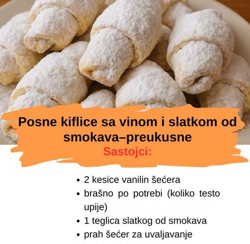 Ako vam se testo lista samo pritisnite prstom tu i tamo, kiflice budu ‘rosave’ kad se ispeku, ali secer to lepo prekrije. Vruce kiflice valjajte u prah secer pomesan sa vanilinim secerom.