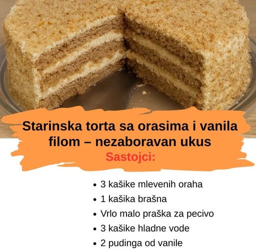 Ova starinska torta sa orasima je lagana, sočna i kremasta, a opet dovoljno raskošna da bude glavna zvezda svake trpeze. Idealna je za slave, rođendane, praznike ili kada želite da iznenadite svoje najmilije.