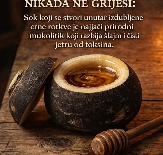Kada farmaceutski sirupi zakažu, a kašalj postane toliko uporan da “reže” grlo i grudi, vrijeme je da se vratimo najstarijem lijeku u našoj tradiciji – crnoj rotkvi (Raphanus sativus niger). Kombinacija soka crne rotkve i meda stvara moćnu hemijską reakciju koja proizvodi jedan od najjačih prirodnih ekspektoranasa (sredstava za iskašljavanje) na svijetu.