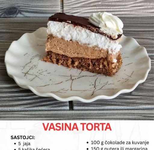 Kada se govori o raskošnim poslasticama balkanske kuhinje, jedno ime se uvek izdvaja – Vasina torta. Njena posebnost leži u slojevima – mekana kora, bogat orahovo-čokoladni fil, penušavi šaum i nežna čokoladna glazura. To nije obična poslastica koja se pravi svaki dan, već desert rezervisan za posebne trenutke: praznike, rođendane, venčanja i porodična okupljanja.