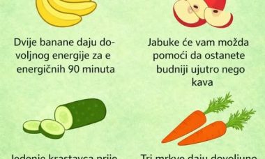 Dvije banane daju dovoljno energije za 90-minutni trening. Jabuka ujutro povećava budnost učinkovitije nego kafa. Konzumacija krastavca …