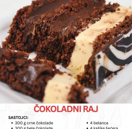 Zamislite tortu koja je istinski raj za sve ljubitelje čokolade – raskošna, bogata, sa savršenom ravnotežom između tekstura i ukusa. Čokoladni raj je upravo takva poslastica: torta napravljena od 1000 g čokolade, koja spaja čokoladnu snagu crne, mlečne i bele čokolade u harmoniji koja očarava. Njena posebnost leži u savršenoj kombinaciji sočnih korica i kremastih slojeva, što ovu tortu čini idealnom za posebne prilike kada želite da impresionirate svoje goste.