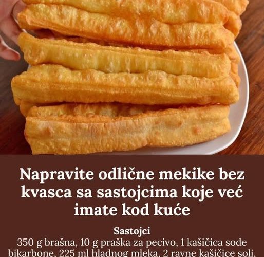 Priprema: Pomešajte brašno, prašak za pecivo, sodu bikarbonu, so i postepeno sipajte mleko. Sjedinite smesu, pa sipajte ulje. Umesite testo i pokrijte, pa ostavite 40 minuta. Testo zatim premesite, umotajte u providnu foliju, pa ostavite da odmori oko 4-5 sati na sobnoj temperaturi ili stavite u frižider preko noći. Razvucite testo prstima ili oklagijom, na 1/2 cm debljine, pa isecite trake. Zatim uzmite štapić za ražnjiće i malo ga pokvasite. Pritisnite po sredini svaku traku od testa, a zatim stavite dve trake jednu na drugu i opet pritisnite po sredini. Pržite u zagrejanom ulju.