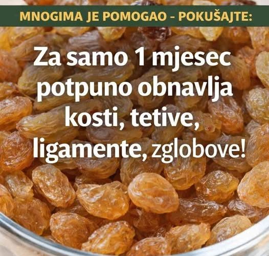 Suvo grožđe je jedna od najstarijih i najzdravijih prirodnih namirnica koje se koriste širom sveta. Iako je sitno, bogato je hranljivim materijama koje mogu pozitivno uticati na zdravlje kostiju, zglobova i celokupnog organizma.