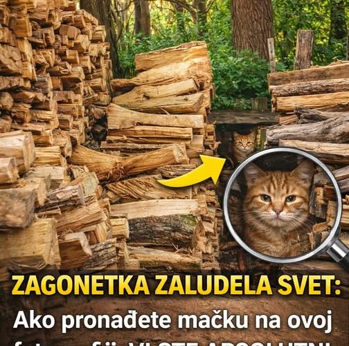 Negde, na fotografiji, se nalazi mačka. Mnogi su se ubili tražeći, zurili satima u lepo naslagana drva za ogrev, ali slaba vajda. Takođe, su mislili da je prevara,te da na slici nema nikakve mačke, ALI mačka je tu, ne brinite.
