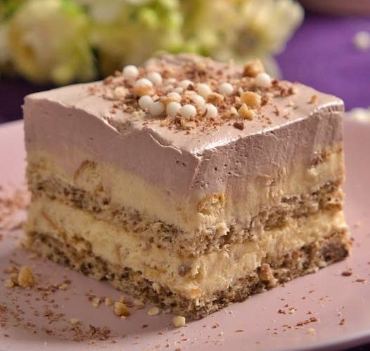 - Isjeckati obje vrste čokolade, pa dodati kremu, dodati i lomljeni keks i sve sjediniti.