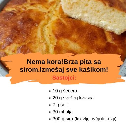 Ako voliš domaće pite ali nemaš vremena za razvlačenje kora, onda je ova brza pita sa sirom bez kora pravi izbor za tebe!