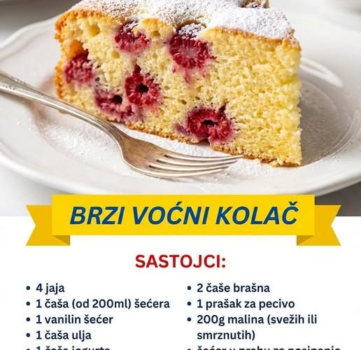 Brzi voćni kolač je savršena poslastica za trenutke kada želite nešto slatko, a nemate puno vremena. Ovaj kolač je jednostavan za pripremu, a maline mu daju osvežavajuću notu. Pripremite se za sočan i ukusan desert koji će oduševiti vašu porodicu i prijatelje.