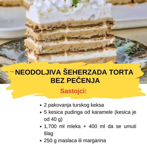 Filujte: , fil, šlag, keks, fil, šlag, keks, fil, šlag, keks, fil i umućena slatka pavlaka.