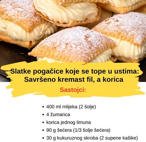 Ispecite lisnato testo i napunite kremasitm filom. Rezultat su predivne slatke pogačice.