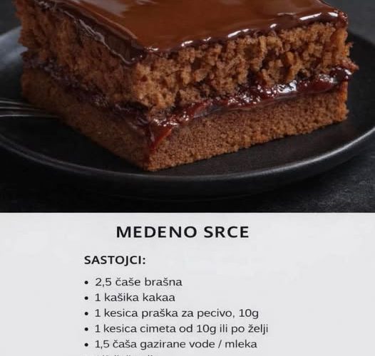 Medeno Srce je tradicionalni kolač koji osvaja svojom jednostavnošću, ali i bogatim, sočnim ukusom. Ovaj kolač je savršena kombinacija čokolade, pekmeza od kajsija i začina, kreirajući neodoljivu poslasticu koja će osvojiti vaša čula. U nastavku pronađite detaljan recept kako biste kod kuće pripremili ovaj nezaboravni desert.
