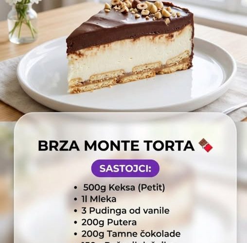 Kada želite desert koji spaja bogate, baršunaste slojeve vanile i čokolade sa krckavim orašastim plodovima, a ne želite da provodite sate uz rernu, Brza Monte torta je idealno rešenje. Ova poslastica donosi onaj dobro poznati, luksuzni ukus u obliku izdašne torte koja je savršena za svaku proslavu ili porodično okupljanje.