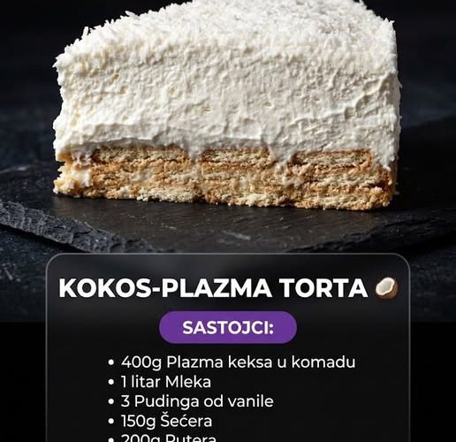 Kada tražite brzu, elegantnu i neverovatno ukusnu poslasticu, Kokos-Plazma torta je neprikosnoveni favorit. Ovaj kolač bez pečenja spaja omiljeni ukus Plazma keksa sa bogatom, kremastom strukturom vanile i egzotičnom aromom kokosa, stvarajući savršen desert za svaku priliku.